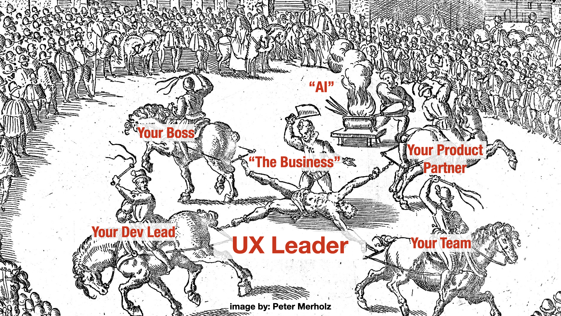 And then there's this image which I created a few years ago (with a subtle change in the past year) that depicts what it feels like for my UX/Design leaders, particularly at the Director level: